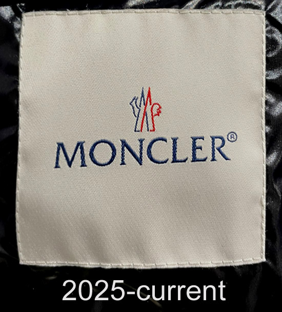 | Sometimes it's very easy to spot a fake just by looking at the brand label. Since about 2005, Moncler has used the off-white label with blue and red print. While the design of the label has changed ever so slightly over the years, the details of this label are 100% consistent with labels from the same generation/years. |